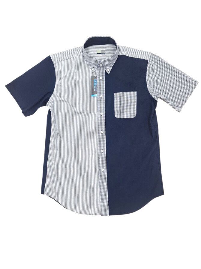接触冷感COOL MAX半袖/ボタンダウンカラー/ブルーマルチストライプ/M~LL/ビジネスカジュアル/綿サッカー生地/