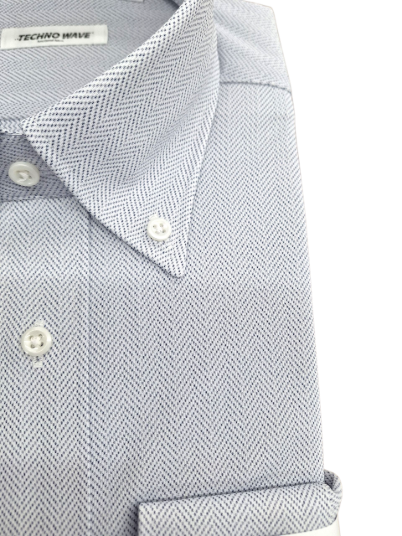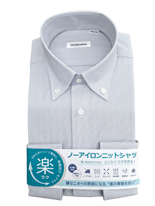 TECHNO WAVEノーアイロンニットシャツ/快適な着心地・やわらかニット/ボタンダウン/ヘリンボーン柄/M~LL