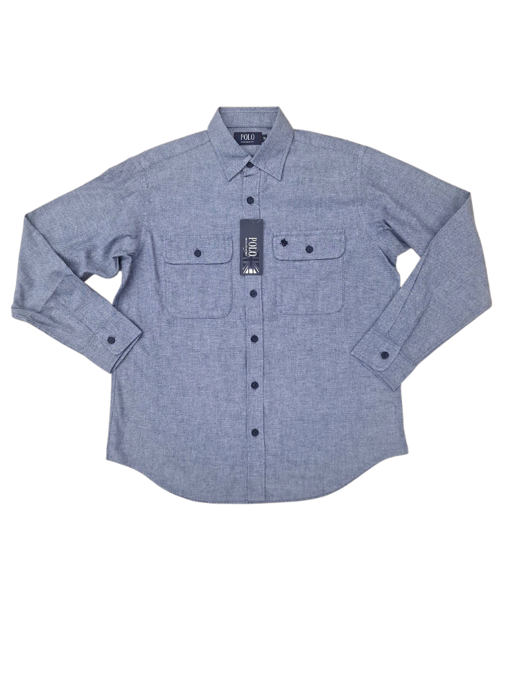 # POLO BCS ポロビシーエス長袖 カジュアルオーバ-シャツ ライトネル 綿100% コットン ボタンダウン メンズ メンズファッション/ブルー