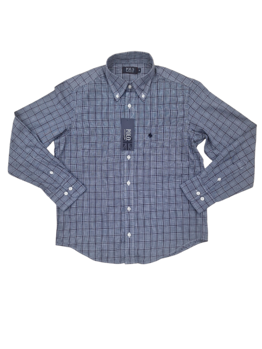 # POLO BCS ポロビシーエス長袖 カジュアルシャツ 綿100% コットン ボタンダウン メンズファッション/グレー×レッドチェック