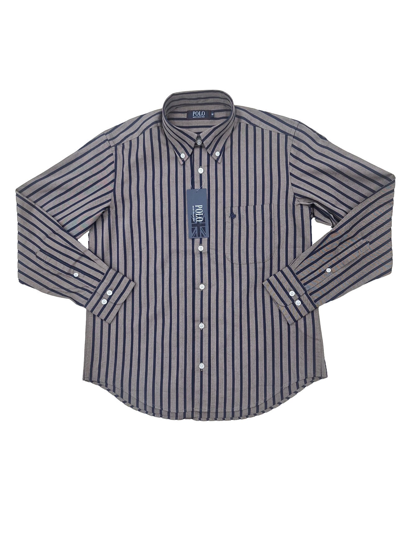 # POLO BCS ポロビシーエス長袖 カジュアルシャツ 綿100% コットン ボタンダウン メンズファッション/カーキストライプ