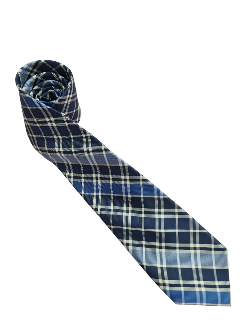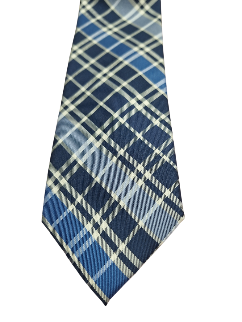 シルク製のブルーチェックネクタイ