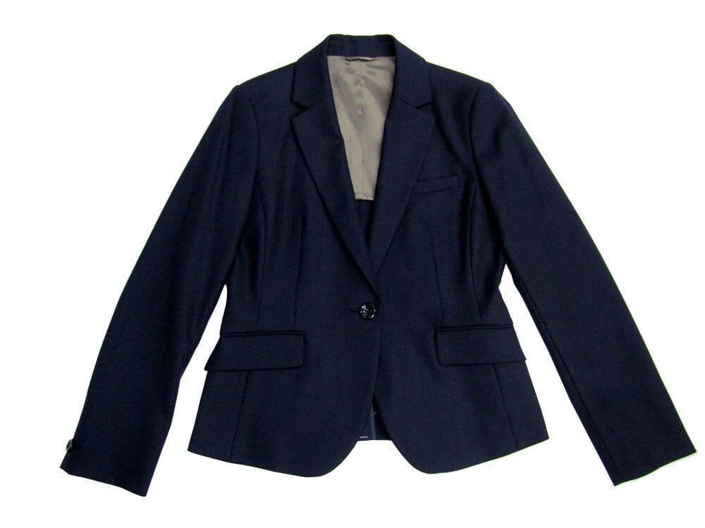 レディ-ス/濃紺ヘリンボーン織柄/ストレッチウール仕様/ジャケット/ウォッシャブル