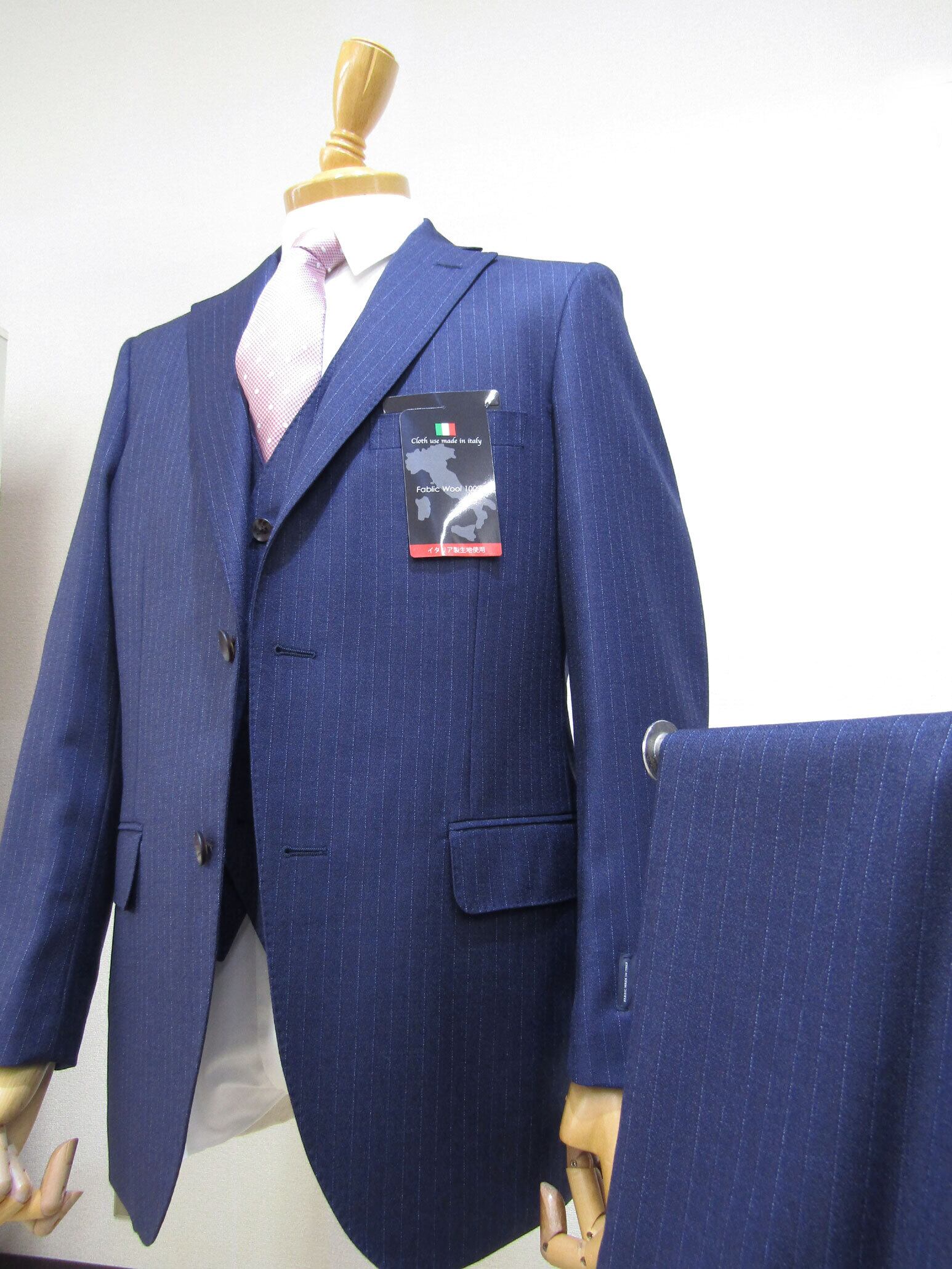 秋冬/イタリアインポート生地REDA(レダ)/ネイビー/スリーピース/上質ウール仕様/お祝い/パーティー/お洒落