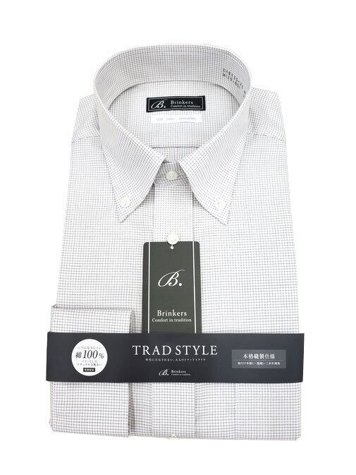 大人のトラッドスタイル/形態安定/綿100%/本格オーダー仕様/ブラウンチェック/ボタンダウンシャツ/レギュラーシルエット/ジャケット合わせ