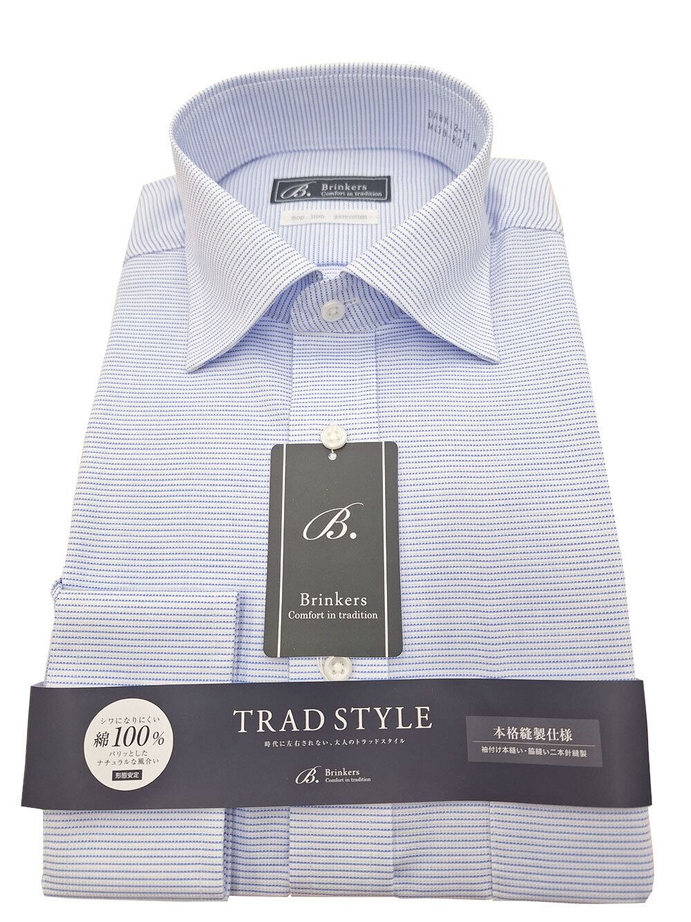 大人のトラッドスタイル/形態安定/綿100%/本格オーダー仕様/サックス/セミワイドカラーシャツ/レギュラーシルエット/ジャケット合わせ/春夏/爽やか