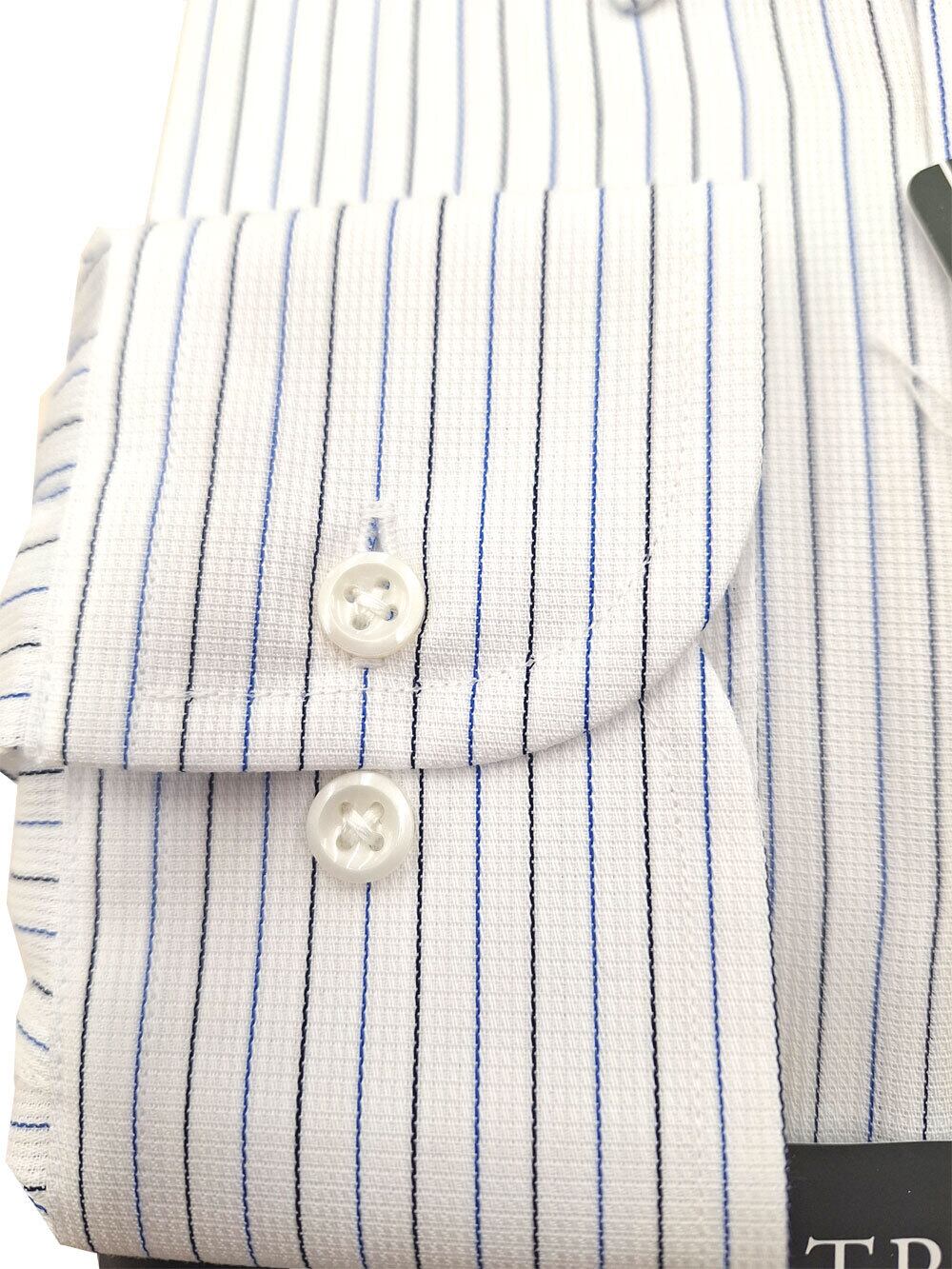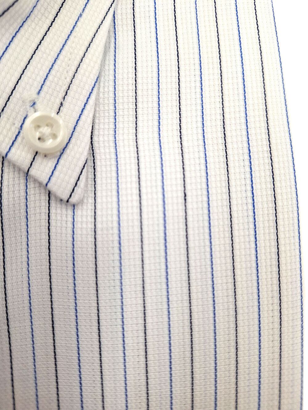 トラッドスタイルを楽しめる大人向けのシャツです。形態安定加工が施された綿100%の素材を使用し、快適な着心地を実現しました。ブルーペンシルストライプ柄が爽やかで上品な印象を与えます。