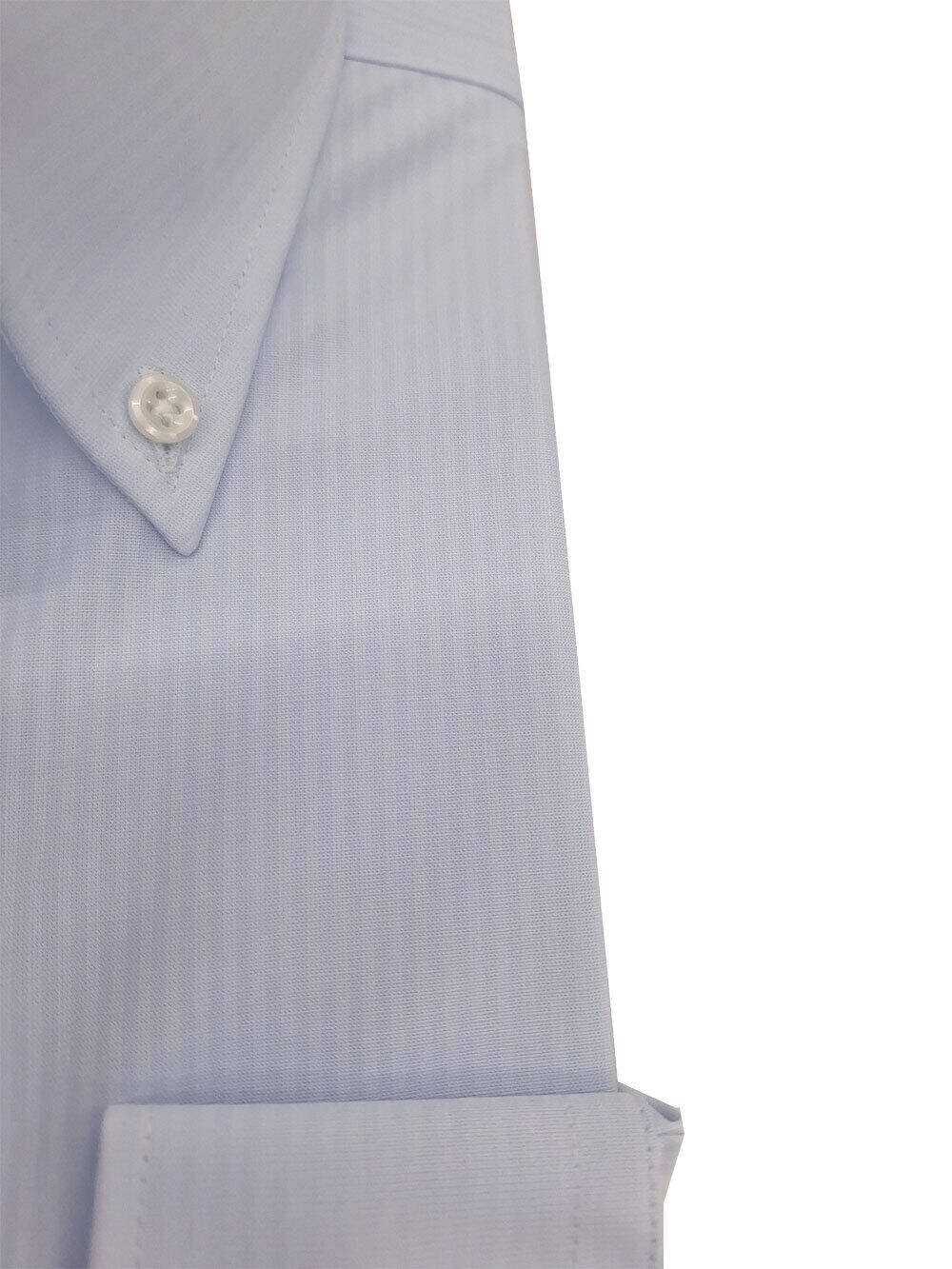 スーパーストレッチ/防汚・ノーアイロン・ストレッチうれしい!3つの機能性/ポリエステル100%TECHNO WAVEシャツ/サックス/ボタンダウン/ノーネクタイ/ジャケット合わせ/